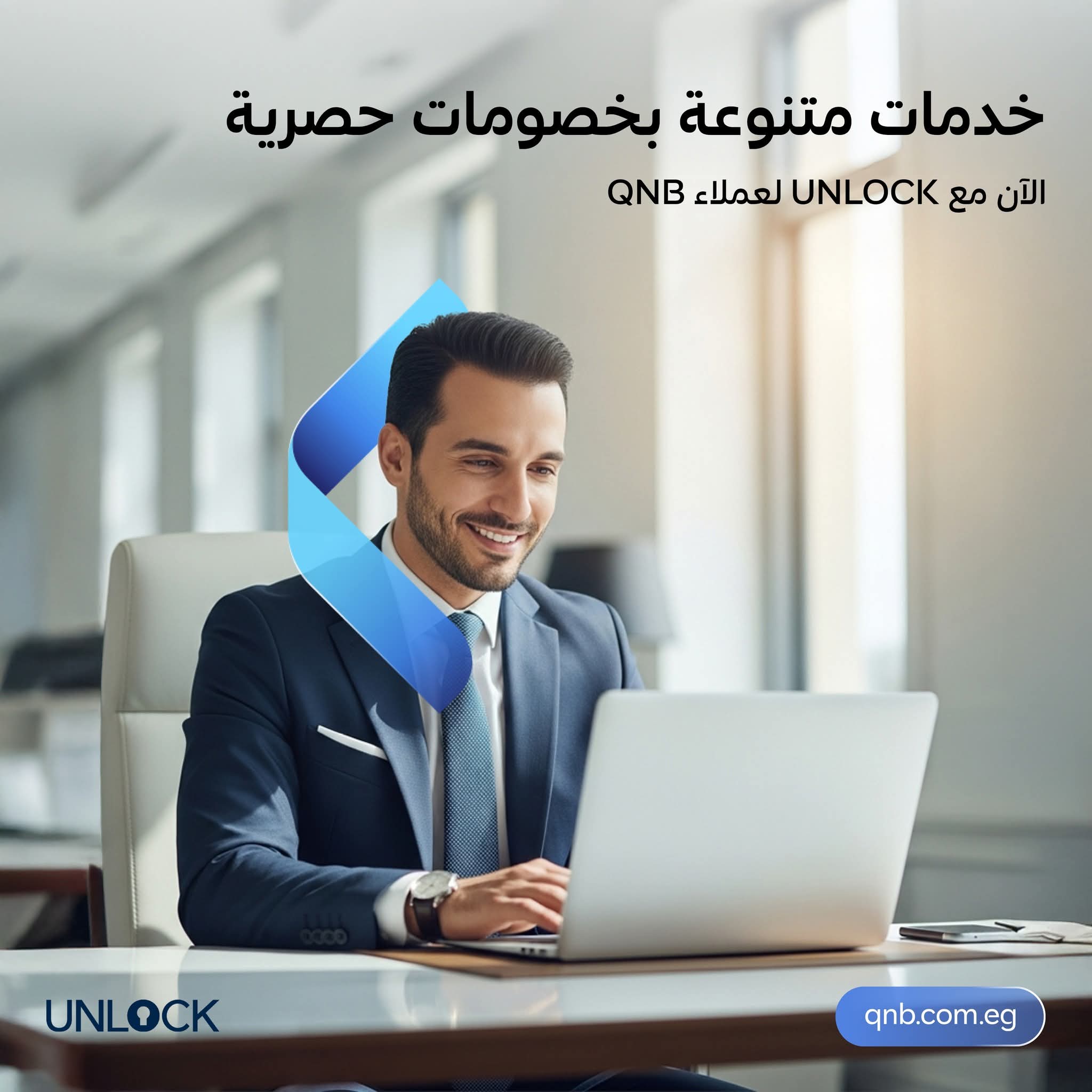 في إطار سعيه لتعزيز القيمة المضافة لعملائه، أعلن بنك «QNB مصر» عن شراكة استراتيجية مع منصة «UNLOCK» المتخصصة في تقديم الخدمات المهنية والاستشارية، لإطلاق عرض حصري يتيح خصومات تصل إلى 20% عند استخدام بطاقات QNB مصر على المنصة، وذلك حتى 24 سبتمبر 2025 أو حتى نفاد الكمية، مع تطبيق الشروط والأحكام.