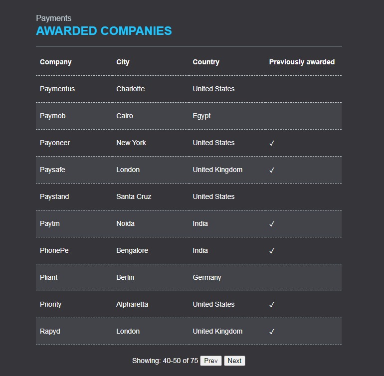 • المدفوعات (Payments): وهي الفئة التي استحوذت على الحصة الأكبر من الشركات المختارة، بنسبة 25%.