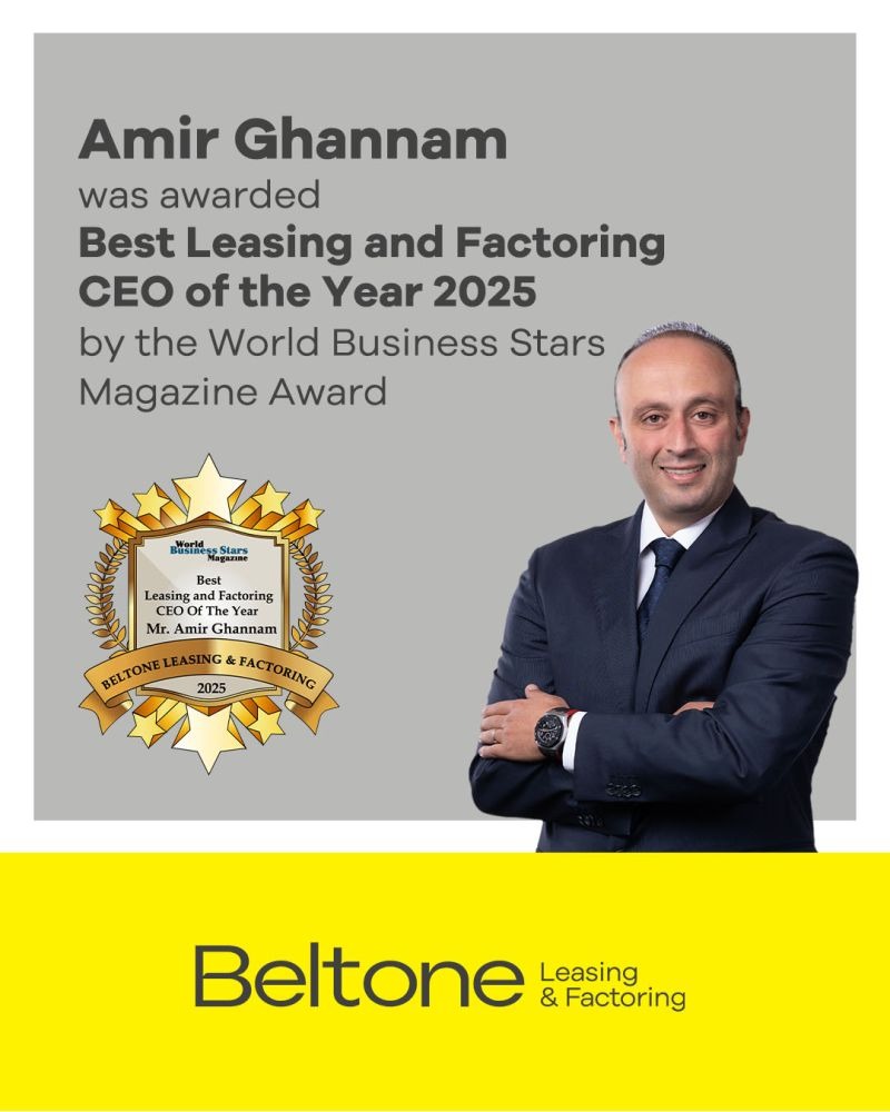 أعلنت مجلة «World Business Stars» العالمية عن فوز السيد أمير غنّام، الرئيس التنفيذي، بجائزة أفضل رئيس تنفيذي في قطاع التأجير والتخصيم لعام 2025، وذلك تقديرًا لدوره البارز في قيادة التحول داخل القطاع، وجهوده في تقديم حلول تمويلية مبتكرة ومستدامة تدعم نمو بيئة الأعمال في مصر.