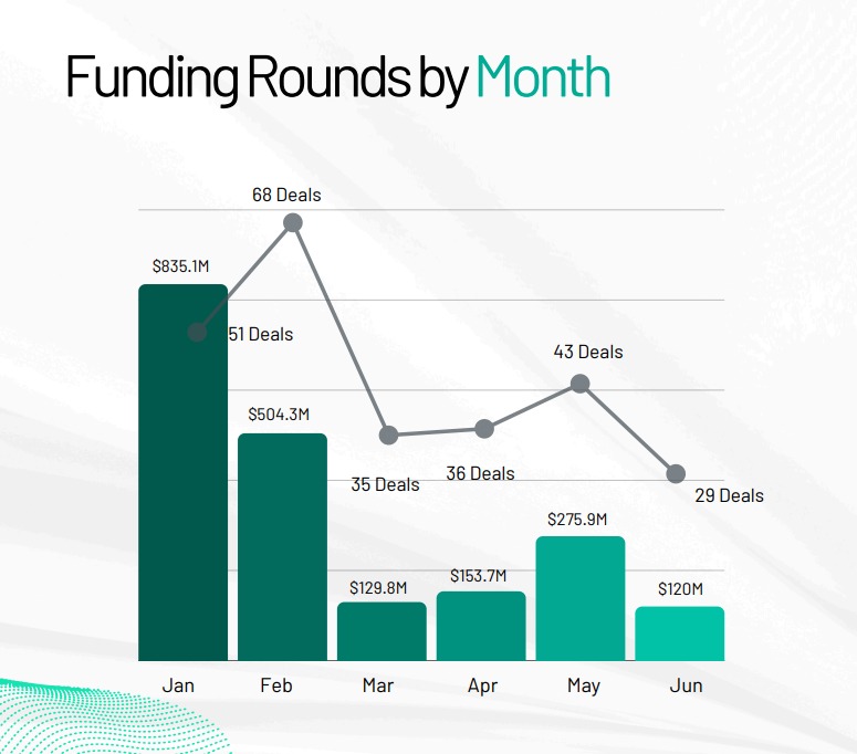 وفي المقابل، تراجعت جولات Venture Round من المركز الثالث إلى الخامس خلال النصف الأول من 2025، مع انخفاض في عدد الصفقات بنسبة 50%، مما يعكس توجهًا أكثر حذرًا من المستثمرين تجاه تمويل المراحل المتقدمة.