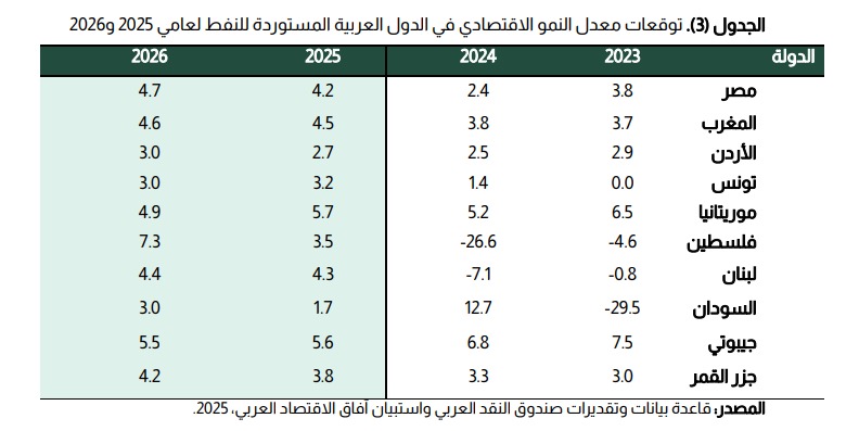 وتشير التقديرات إلى تحسّن معدل نمو الاقتصادات العربية، حيث يُتوقع أن يسجل 3.8% في عام 2025، ويرتفع إلى 4.3% في 2026، مقارنة بـ2.2% في 2024، مدعوماً بالإصلاحات الاقتصادية، وتنويع مصادر الدخل، وتحسّن بيئة التمويل والاستثمار.