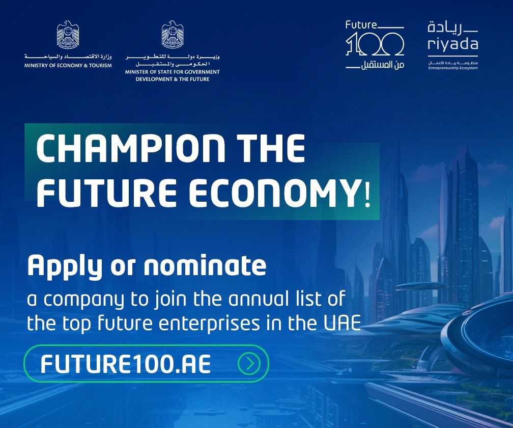 لعام 2025” التي سوف تضم الشركات والمشاريع الأكثر نمواً وابتكاراً وتعمل في قطاعات الاقتصاد الجديد وتتخذ من دولة الإمارات العربية المتحدة مقراً لها أو لأعمالها، وذلك بعد اجتيازها عملية التقييم واستيفاء الشروط والمعايير المطلوبة، حيث إن باب التقديم مفتوح حالياً أمام الشركات الراغبة في الانضمام للمبادرة من خلال الموقع الإلكتروني www.future100.ae وسيتم إغلاقه في شهر أكتوبر المقبل.