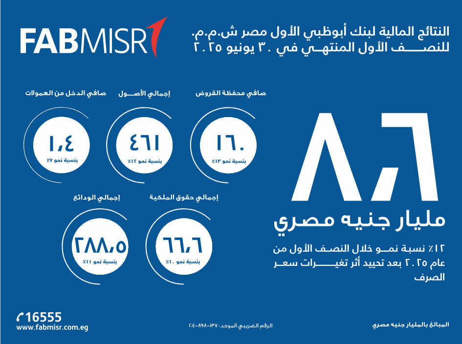 ويعزز أداء بنك أبوظبي الأول مصر خلال النصف الأول من عام 2025 مكانته كشريك مالي موثوق، يجمع بين الخبرة المصرفية العالمية وفهم عميق للسوق المحلية. ويواصل البنك الاستثمار في التحول الرقمي وتعزيز خدماته لتلبية تطلعات العملاء المتزايدة، مع الالتزام بدعم مسيرة التقدم الاقتصادي في مصر.