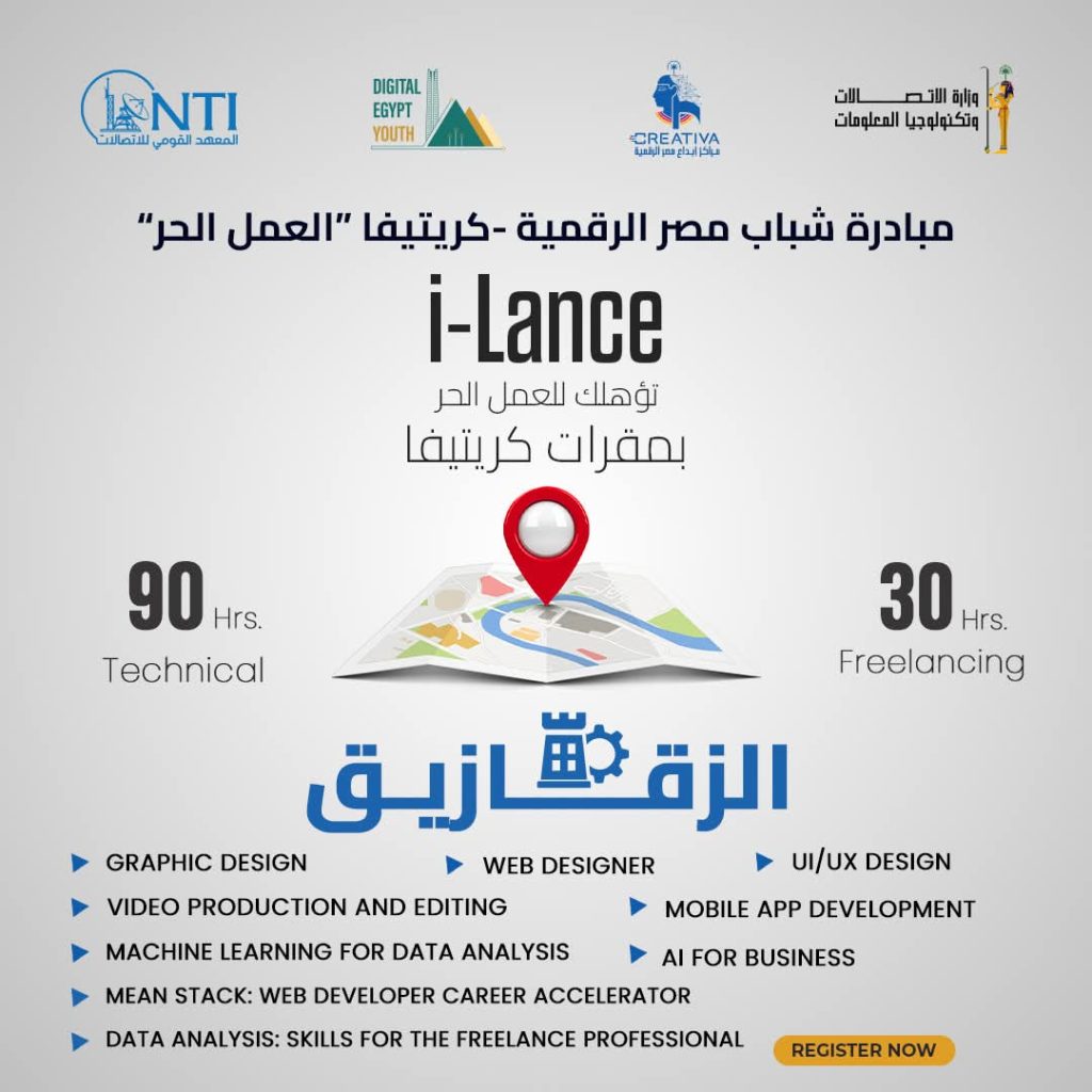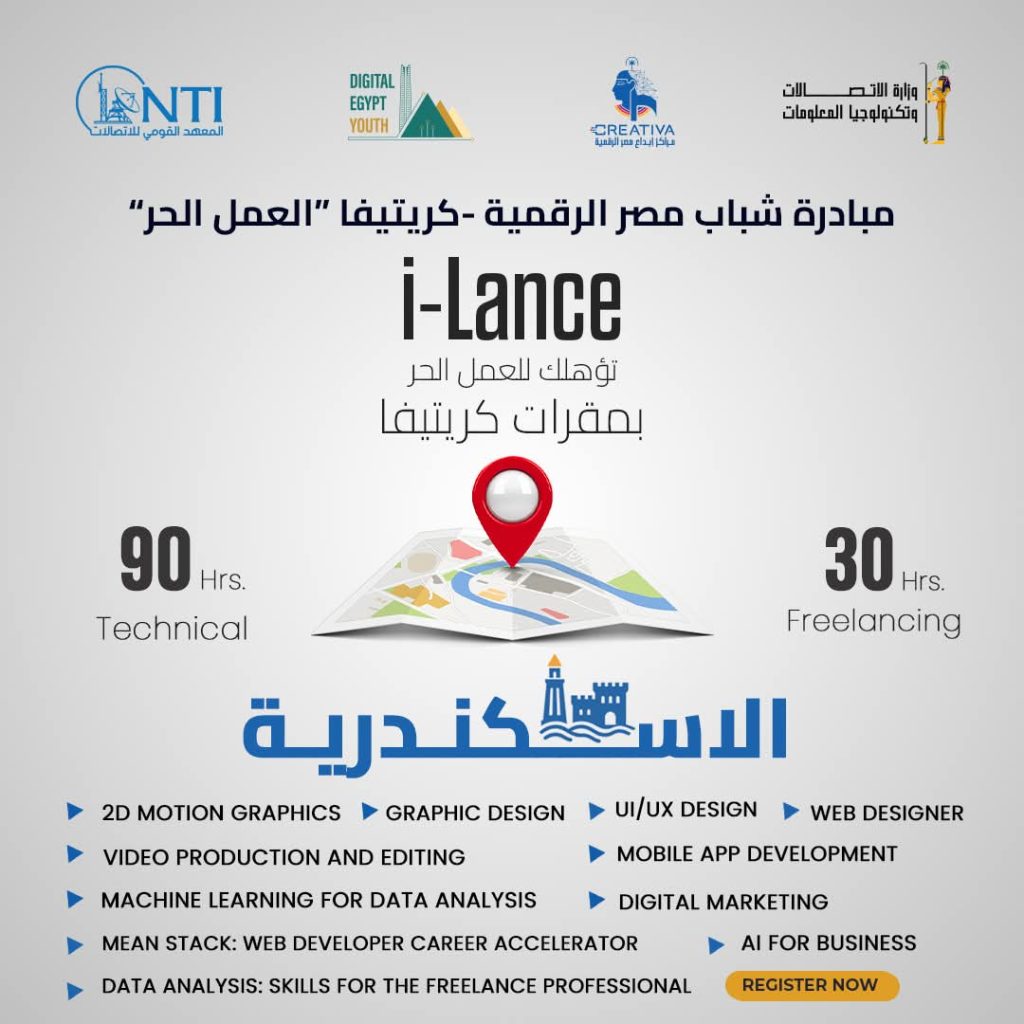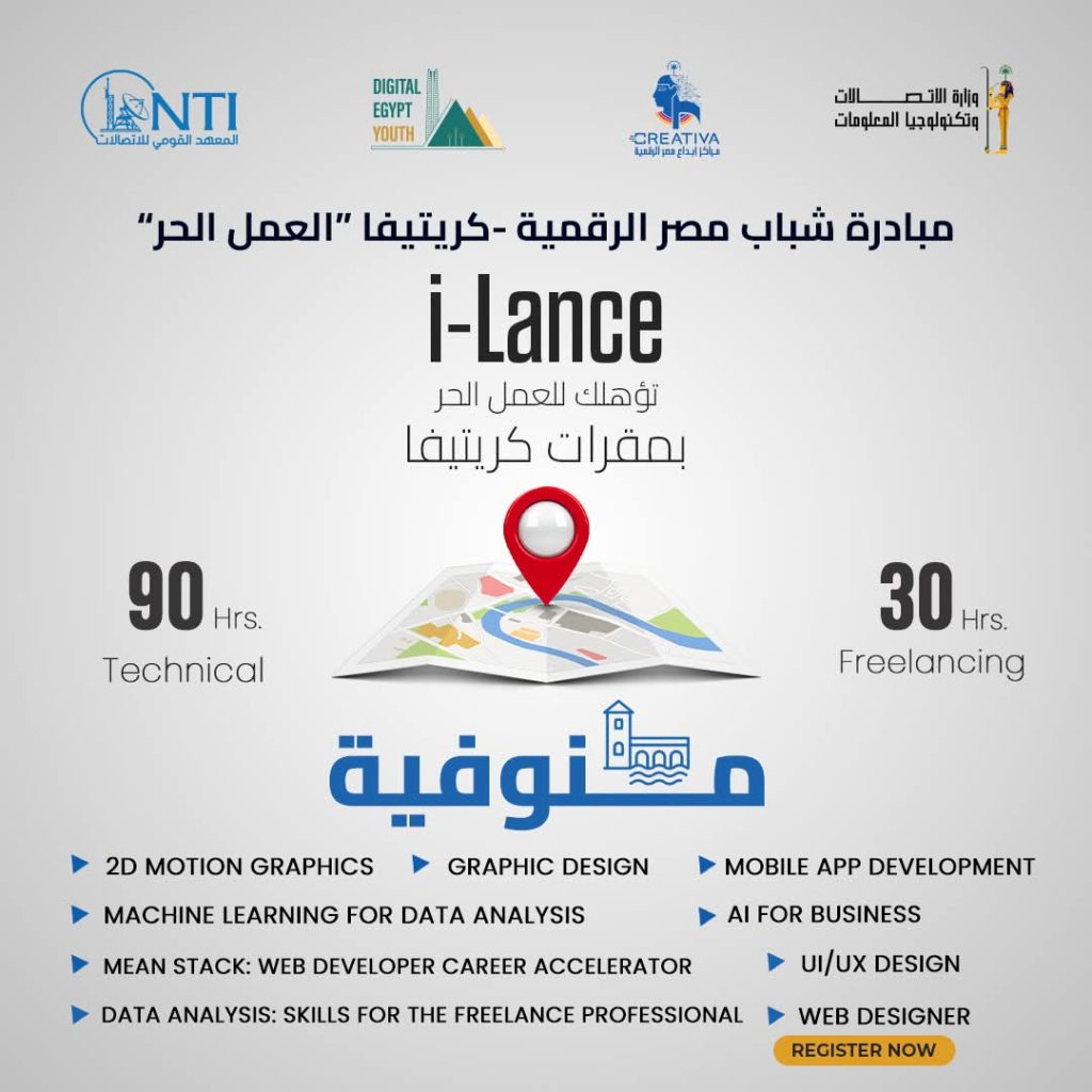 أعلن المعهد القومي للاتصالات عن فتح باب التسجيل في “مبادرة شباب مصر الرقمية بمراكز إبداع مصر الرقمية” في برنامج i-Lance في عدة محافظات، هي المنصورة ودمنهور وبورسعيد والإسكندرية والمنوفية وبنها والزقازيق وطنطا. ويوفر البرنامج فرصًا تعليمية متميزة وتدريبًا عمليًا في مجالات الاتصالات وتكنولوجيا المعلومات.