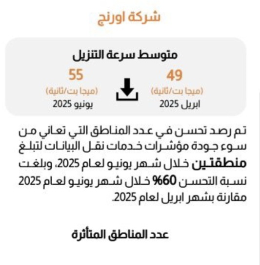 أوضحت نتائج القياس، التي شملت 121 منطقة (مدينة وحي)، أن عدد المناطق التي تعاني من سوء جودة مؤشرات الخدمة لدى أورنج تراجع بشكل كبير ليصل إلى منطقتين فقط خلال يونيو، مقارنة بعدد أكبر في أبريل 2025.