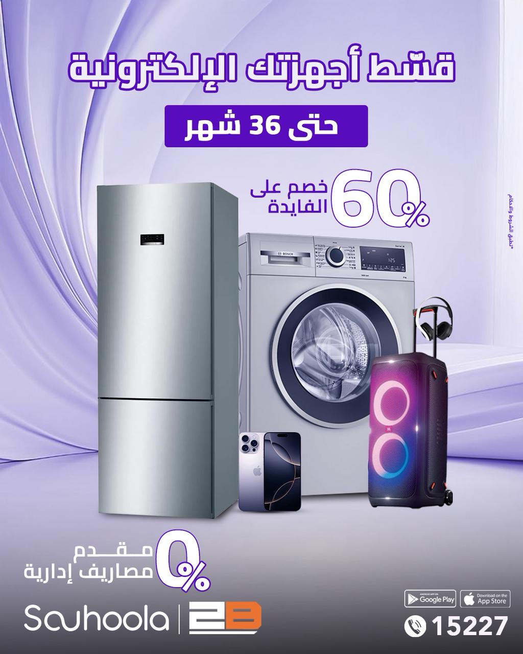 أعلنت شركة «سهولة للتمويل الاستهلاكي» عن طرح عرض مميز بالتعاون مع «2B»، يتيح للعملاء الشراء بدون مقدم وبدون مصاريف إدارية، بالإضافة إلى خصم 60% على الفائدة، مع إمكانية التقسيط حتى 36 شهرًا.