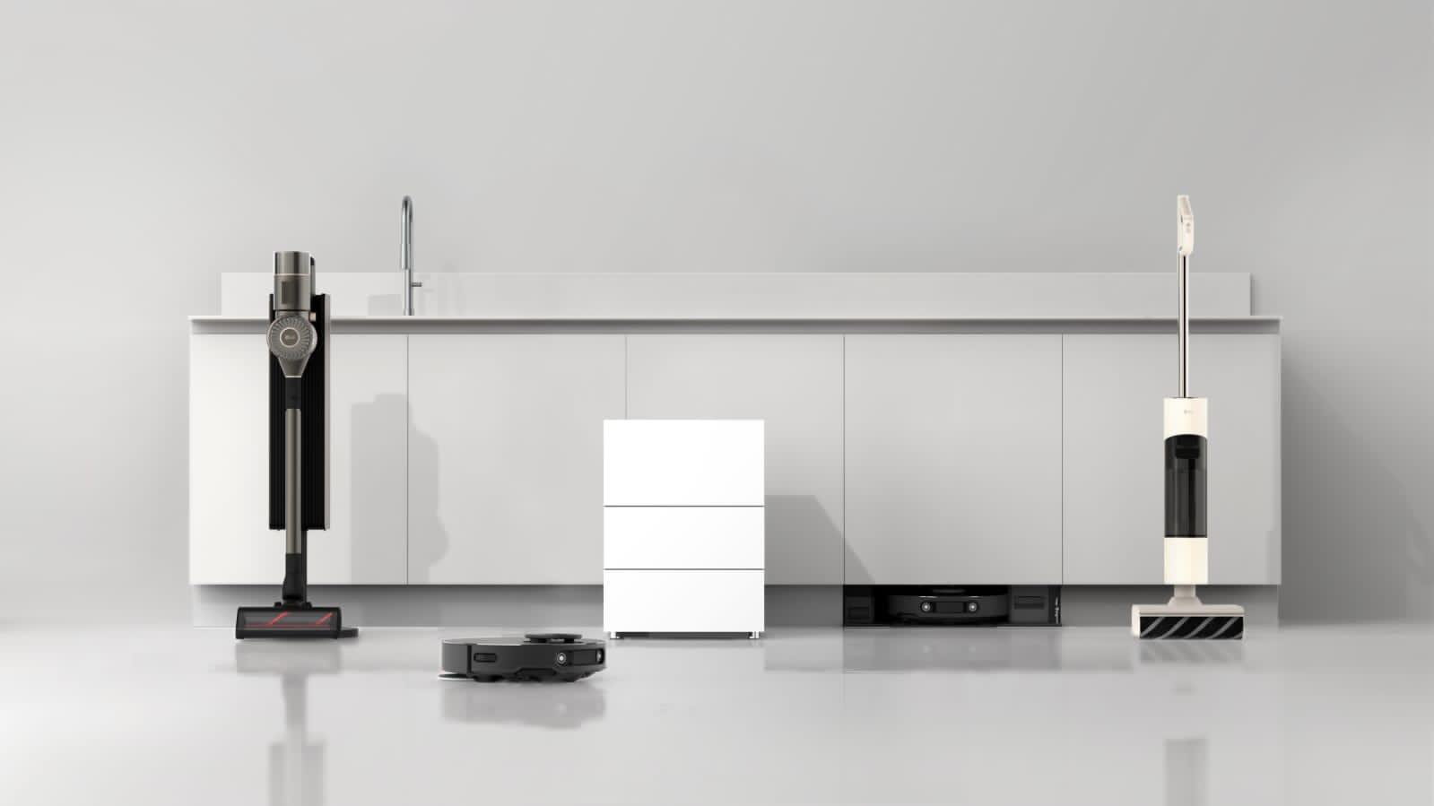 وتضم المجموعة مكنسة روبوتية بممسحة بخارية، وقاعدة شحن مدمجة للمكنسة الروبوتية، ومكنسة بعصا تقليدية، وأخرى تجمع بين التنظيف الجاف والرطب.
