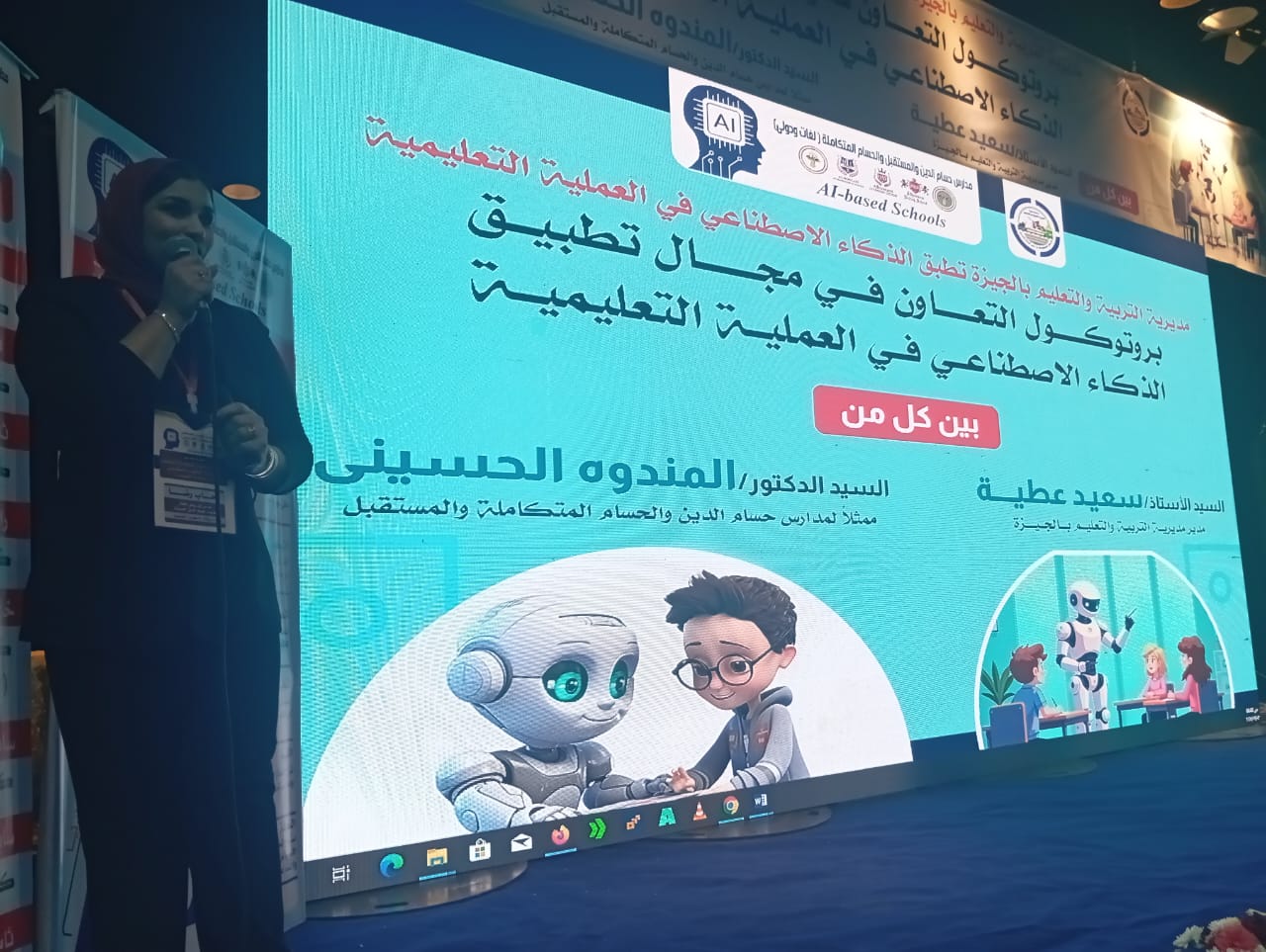 يأتي ذلك ضمن بروتوكول تعاون بين مديرية التربية والتعليم بالجيزة ومدارس الحسام والمستقبل لتقديم خبرات فنية في تدريب المعلمين والمعلمات بمدارس الجيزة على استخدام تقنيات الذكاء الاصطناعي في العملية التعليمية.