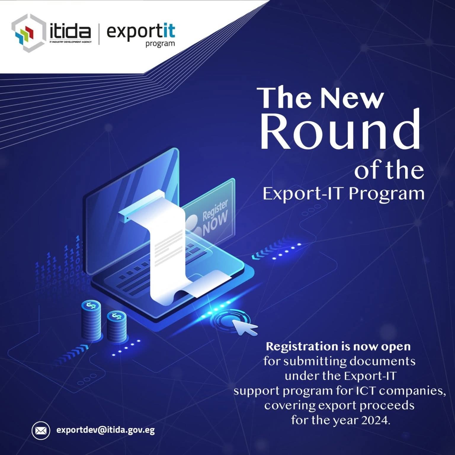 أعلنت هيئة تنمية صناعة تكنولوجيا المعلومات (إيتيدا) عن إطلاق الدورة السادسة عشرة من برنامج المساندة التصديرية، وفتح باب التسجيل وتقديم المستندات لشركات الاتصالات وتكنولوجيا المعلومات عن عائدات صادرات 2024.