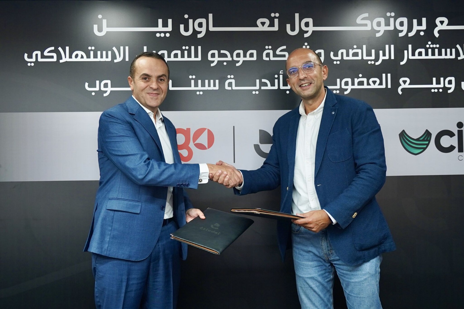 وقعت شركة «موجو» للتمويل الاستهلاكي بروتوكول رعاية وتعاون استراتيجي مع شركة «إستادات للاستثمار الرياضي» بهدف رعاية شبكة «سيتي كلوب» وتقديم خدمات مالية متطورة لأعضائها لتمويل الاشتراكات.