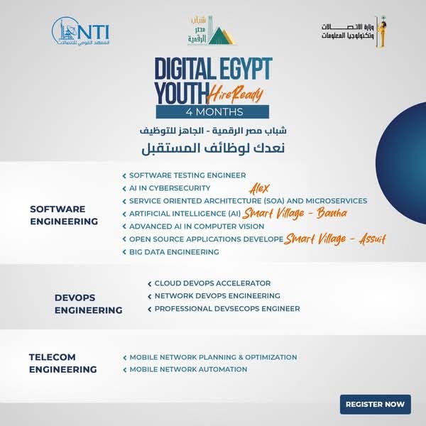 أعلن المعهد القومي للاتصالات عن فتح باب التسجيل في مبادرة “شباب مصر الرقمية – الجاهز للتوظيف” منحة الأربعة أشهر، للخريجين خلال السنوات الخمس الأخيرة.