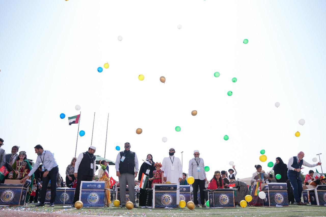 كما أقيمت فعاليات مماثلة في جميع مدارس المجموعة حول العالم، لترتسم ملامح الاحتفال في كل موقع من مواقع «بيس». وارتدى الطلبة القادمون من أكثر من 25 دولة أزيائهم الوطنية التقليدية في مشهد يجسّد التنوع الثقافي لعائلة «بيس»، وترافق إسدال الشعار مع إطلاق بالونات صديقة للبيئة وسرب من الحمام الأبيض، في رمزية تعبّر عن الأمل والسلام وطموحات الأجيال المقبلة.