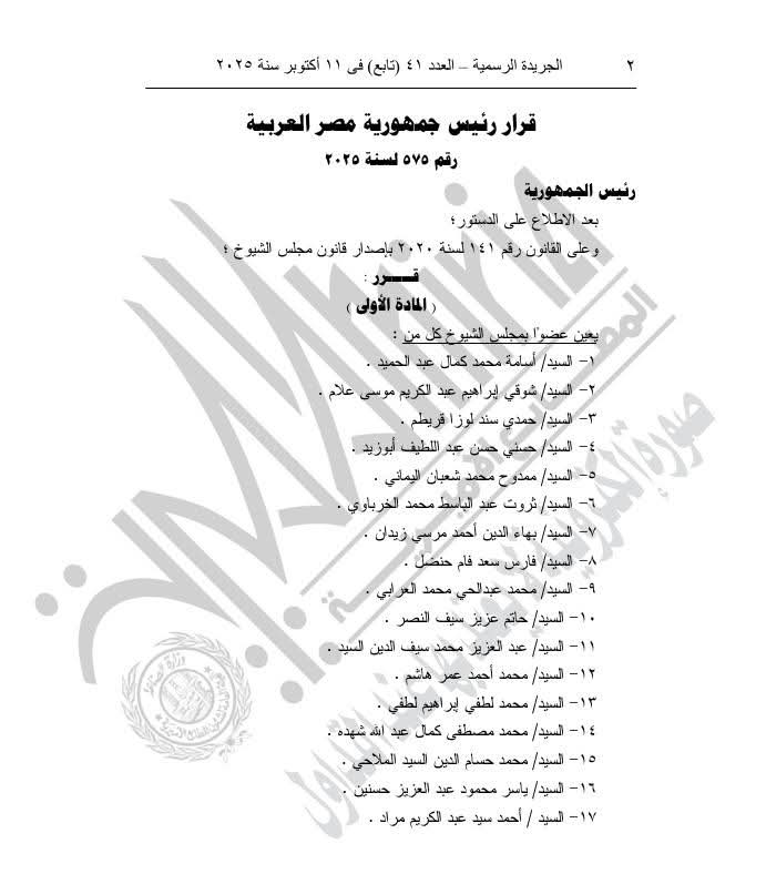 0 فينتك جيت:خاص نشرت الجريدة الرسمية قرار رئيس جمهورية مصر العربية رقم 575 لسنة 2025، بشأن تعيين 100 شخص أعضاء في مجلس الشيوخ، في العدد 41 تابع في 11 أكتوبر 2025. وجاء في المادة الأولى من القرار، يعين عضوًا بمجلس الشيوخ كل من: اقرا ايضا تعيينسحر نصرقرارمجلس الشيوخهاني العتال 0 comments 0 FacebookTwitterPinterestEmail Fintech Gate previous post مجلة «ذي بانكر» البريطانية تختار «المصرف المتحد» ضمن قائمة أفضل 100 بنك أفريقي لعام 2025 next post «مارس ريجلي» تدشن خطوط إنتاج جديدة في مصر باستثمارات 280 مليون دولار You may also like «حابي» تعقد مؤتمرها السنوي السابع تحت عنوان (تنافسية... 8 ديسمبر، 2025 Forbes Middle East to Host the “Top Advisors... 8 ديسمبر، 2025 «عمر المنير»: الذكاء الاصطناعي أداة لتغيير المجتمع وتحقيق... 8 ديسمبر، 2025 «معهد تكنولوجيا المعلومات» يشارك في «هاكاثون2025» لتحالف جامعات... 8 ديسمبر، 2025 بالشراكة مع «بلتون القابضة».. «فوربس الشرق الأوسط» تنظم... 8 ديسمبر، 2025 القومي لتنظيم الاتصالات المصري يطلق مبادرة لتدريب الكوادر... 8 ديسمبر، 2025 «ڤودافون مصر» تحصد جائزتي «أفضل شبكة محمول» و... 8 ديسمبر، 2025 Vodafone Egypt Sweeps umlaut’s Best Mobile and Fixed... 8 ديسمبر، 2025 «ڤاليو» تتعاون مع «Enactus Egypt» و «Exits» لتقديم... 8 ديسمبر، 2025 «التمثيل التجارى» ينظم إجتماعاً تنسيقياً مع الجهات «الوطنية... 8 ديسمبر، 2025 Leave a Comment Cancel Reply Save my name, email, and website in this browser for the next time I comment.
