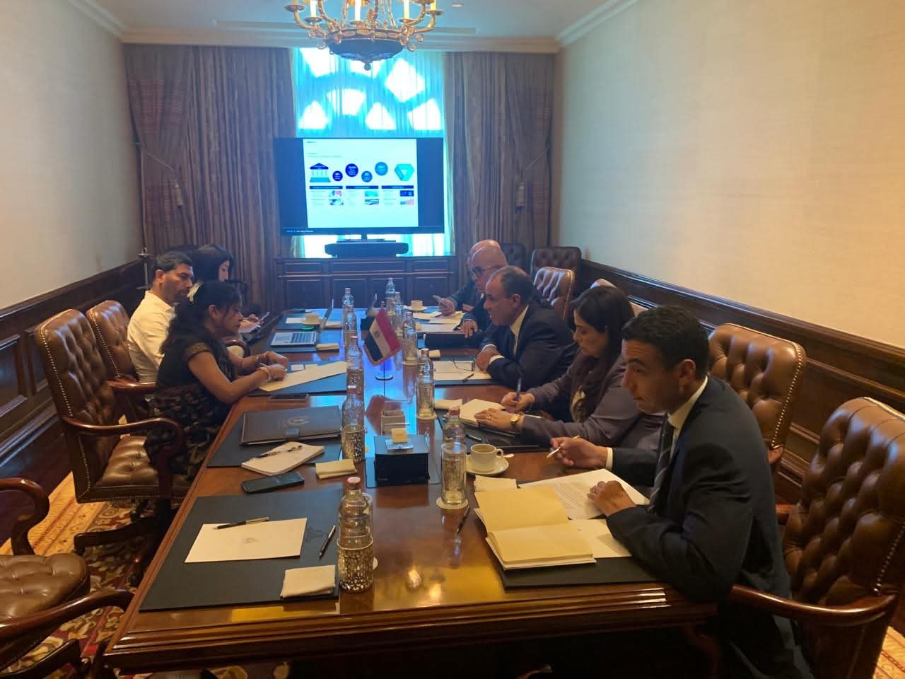 من جانبه استعرض وزير الخارجية الفرص الاستثمارية المُتميزة التي يتيحها الاقتصاد المصري للمستثمرين الأجانب، فضلاً عن الحوافز التشريعية والمالية والمزايا النسبية المتعددة، حيث شدد على الأهمية التي توليها مصر لدور القطاع الخاص المحوري في التنمية.