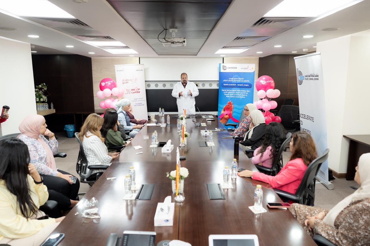 في إطار حرص بنك قناة السويس على تعزيز ثقافة الوعي الصحي بين موظفيه والاهتمام بصحة المرأة وتمكينها. نظم البنك يومًا توعويًا لموظفاته بالتعاون مع مستشفى السلام الدولي. وذلك بالتزامن مع فعاليات شهر أكتوبر الوردي، شهر التوعية بسرطان الثدي، بهدف نشر الوعي بأهمية الكشف المبكر ودوره في الوقاية والعلاج.
