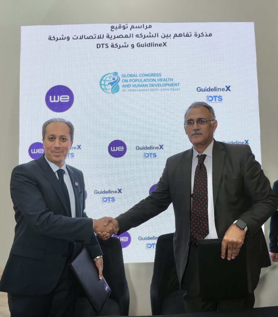 كذلك وقعت المصرية للاتصالات مذكرة تفاهم مع منصة الذكاء الاصطناعي “GuidelineX” ووكيلها المحلي شركه “DTS” لدمج خدمات دعم القرار الإكلينيكي والتحليلات الطبية المدعومة بتقنيات الذكاء الاصطناعي داخل منظومة WE HealthCloud، بما يُساعد الأطباء على اتخاذ قرارات دقيقة بناءً على الإرشادات الطبية العالمية وتحليل البيانات السريرية لحظيًا، مما يرفع كفاءة التشخيص ويُقلل من الأخطاء الطبية، ويستهدف هذا التعاون تعزيز عملية التحول الرقمي وخدمات الرعاية الطبية القائمة على البيانات في جميع المستشفيات المصرية.