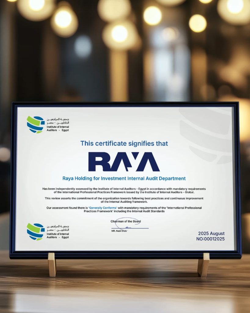 ويمثل هذا الإنجاز محطة مهمة في مسيرة راية نحو تعزيز الثقة المؤسسية، وتطوير آليات المراجعة الداخلية. بما يتماشى مع مكانتها كشركة استثمارية رائدة مدرجة في البورصة المصرية وتلتزم بأعلى مستويات الإفصاح والحوكمة.